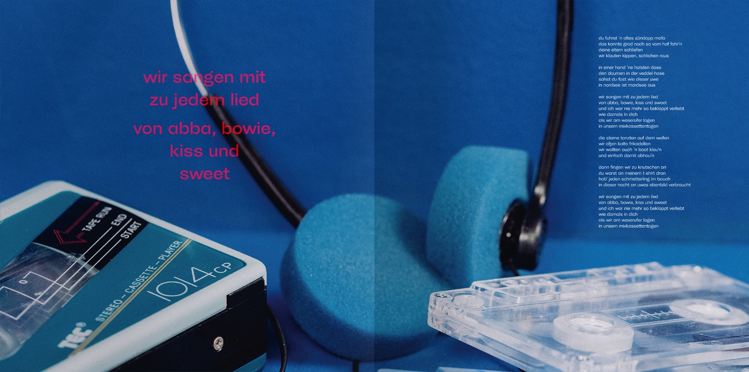 Rückblickend geht alles zusammen – wie bei einem großen Plan: In unseren Design-Meetings haben Ina, Adriana Schulz und ich viele Fotos gesichtet, über Weißraum und Schriften diskutiert und mit Toffifee die Sinne geschärft: Herausgekommen ist ein Artwork, dass mit seiner farblichen Eindringlichkeit und typografischer Konsequenz den Grundstein gelegt hat, um ganz oben anzuklopfen.